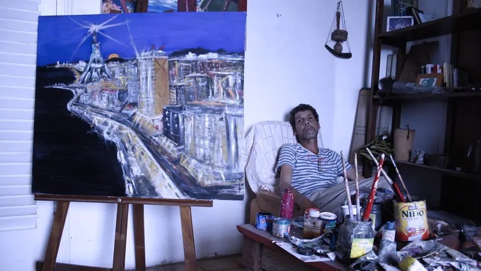 Esta pintura de Luis Royo del Pozo refleja el perfil cambiante de Bata. Nacido en España, este artista ha pasado más de 30 años en Guinea Ecuatorial, de donde procedía la familia de su madre. El Centro Cultural Español en Bata está mostrando una exposición de su obra.