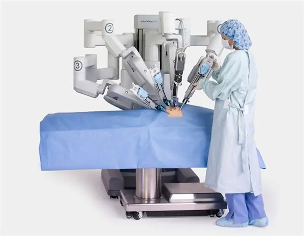Este robot lleva el nombre de uno de los máximos inventores en la historia de la humanidad, y como observamos en la fotografía, fue desarrollado para realizar operaciones de alta complejidad. El equipo es manipulado por un doctor mediante una consola, que es el encargado de manipular los 4 brazos robóticos.