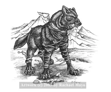 Al principio sólo era un cachorro, pero conforme se alimentó y empezó a crecer llegó un punto que fue imposible controlarlo. Dos veces fallaron los dioses en su intento por apresarlo: primero con la cadena Leding y después con la todavía más fuerte Droma, de las que se liberó fácilmente.