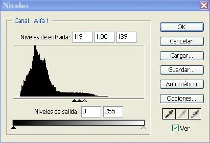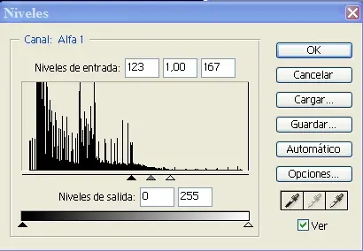 11.- Imagen/ajustes/niveles con los siguientes valores: