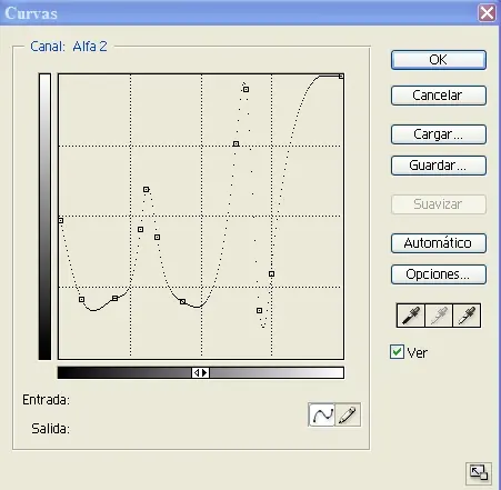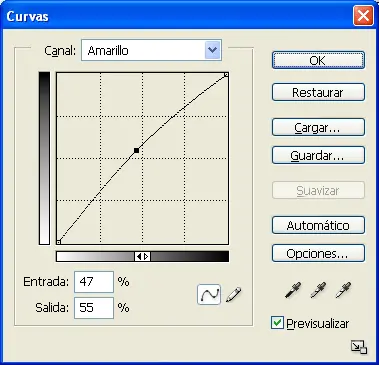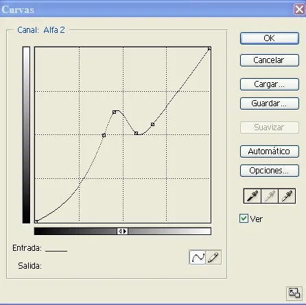 4º Imagen>ajustes>curvas. Siguientes parámetros