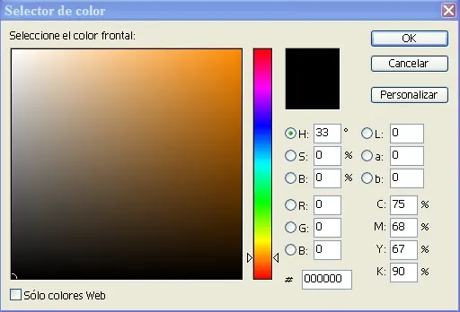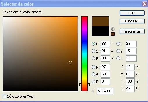 32.- Fijar color frontal con los valores HSB tal y como os muestro en la imagen: