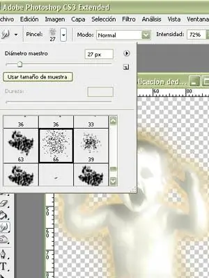 Luego toma un pincel de 5 px como vemos en la imagen de abajo, puede ser de borde suave o duro, de acuerdo a lo que necesites.
