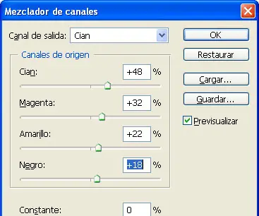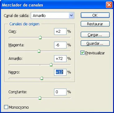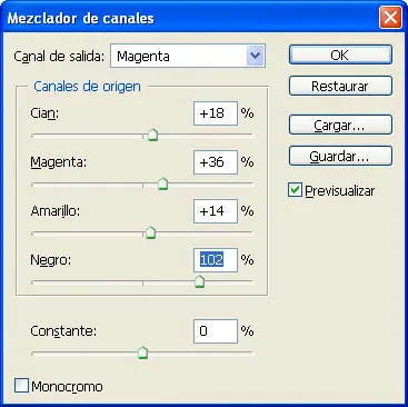 2º Imagen>ajustes>mezclador de canales. Con los siguientes parámetros: