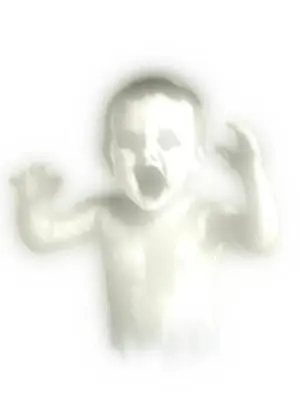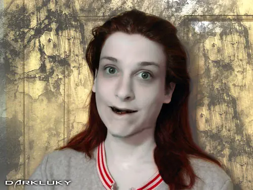 4. ahora con la herramienta dedo difuminado a 13px, normal, intensidad 72%, jalamos por la parte inferior hacia abajo, para pretender que el fantasma surge de la nada, nos deberia quedar asi(disculpen el fondo blanco si es que no se nota bien el efecto).
