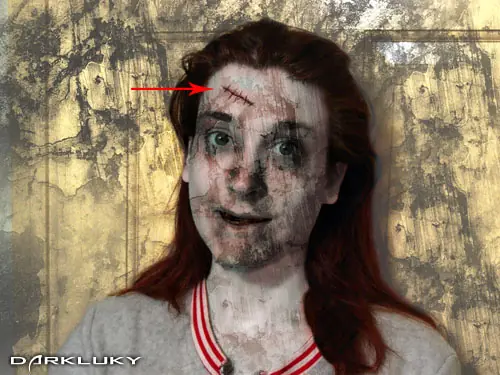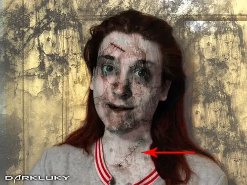 ahora lo que quiero es darle una apariencia a la piel de rasgada. para eso utilizo otra textura como la de la pared y la pongo en modo fusion de capas sobrexponer.