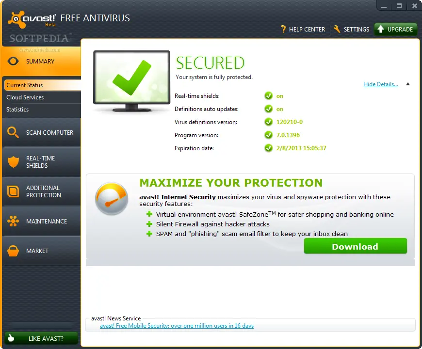 avast! 7 Free se ve muy bien y parece muy resistente. Las nuevas funciones sumadas a la versatilidad del producto y tras la eliminación de todos los fallos, seguramente proporcionará una mejor protección a tu ordenador.