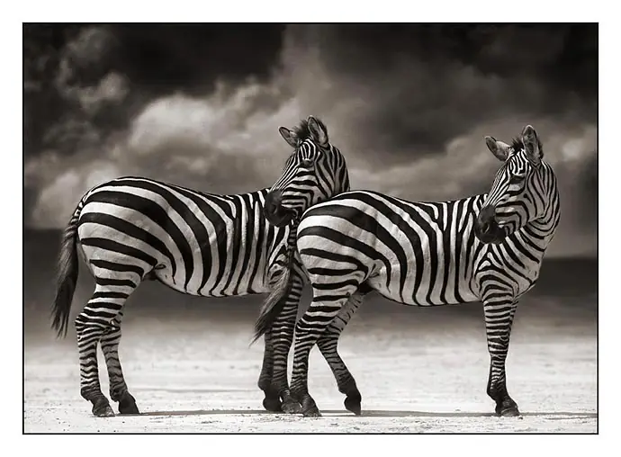 Portrait of Two Zebras Turning Heads, Ngorongoro Crater 2005