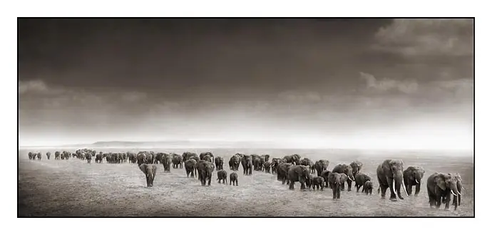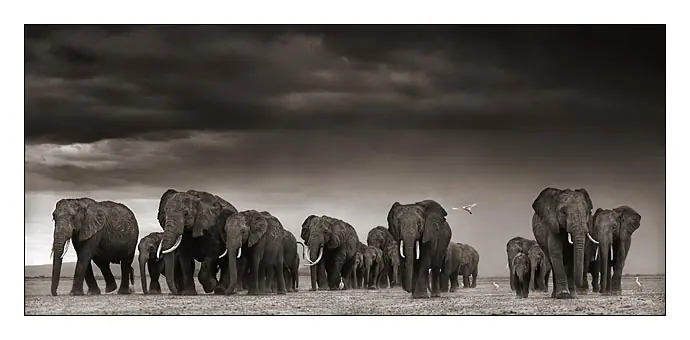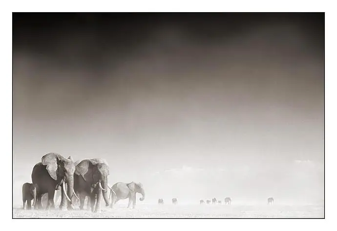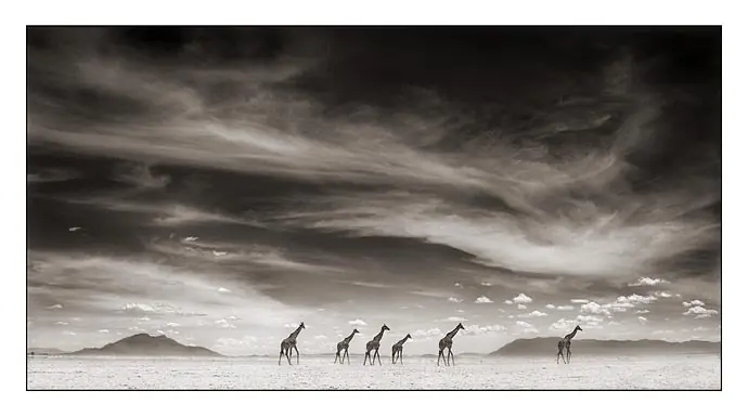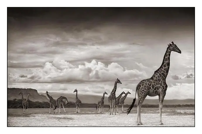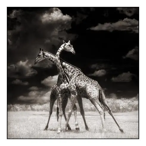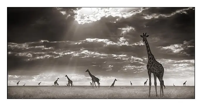 Giraffes Under Swirling Clouds, Amboseli 2007