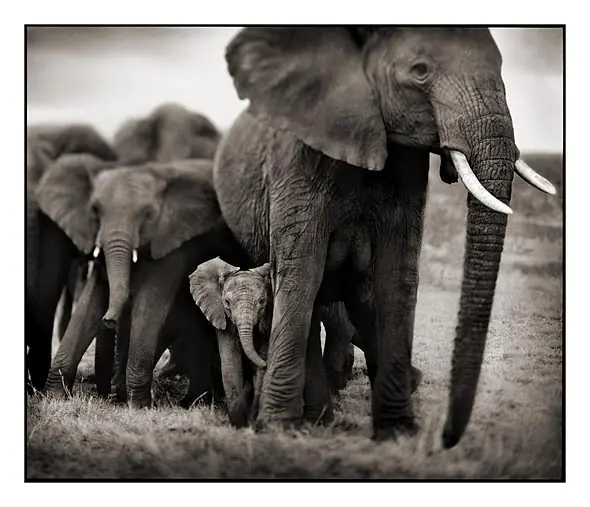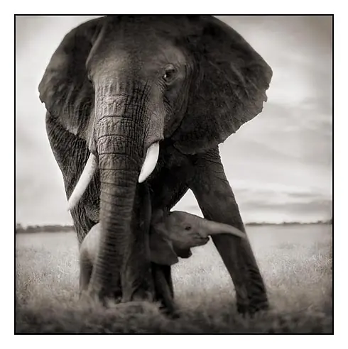 Elephant Mother with Baby Holding Leg, Serengeti 2002