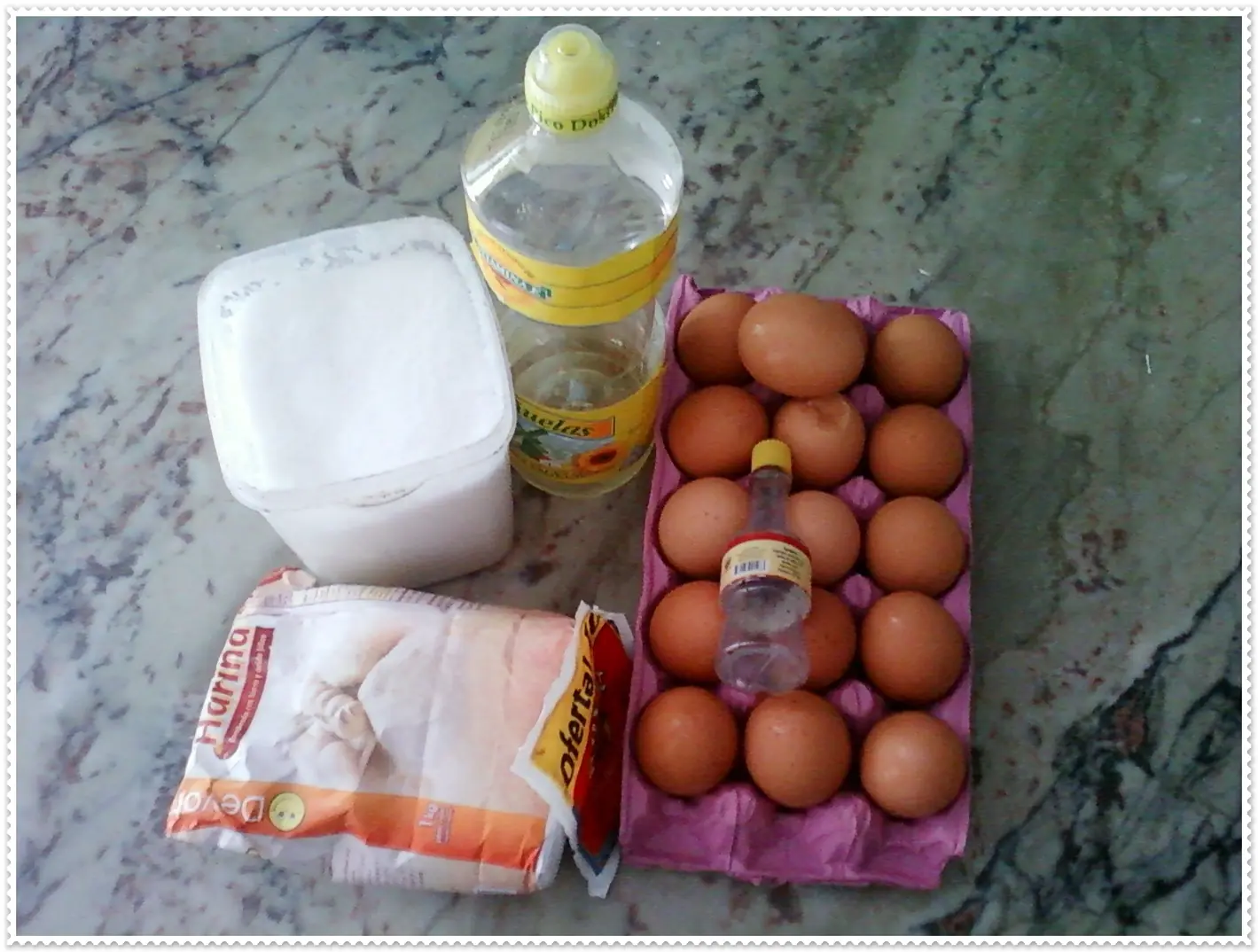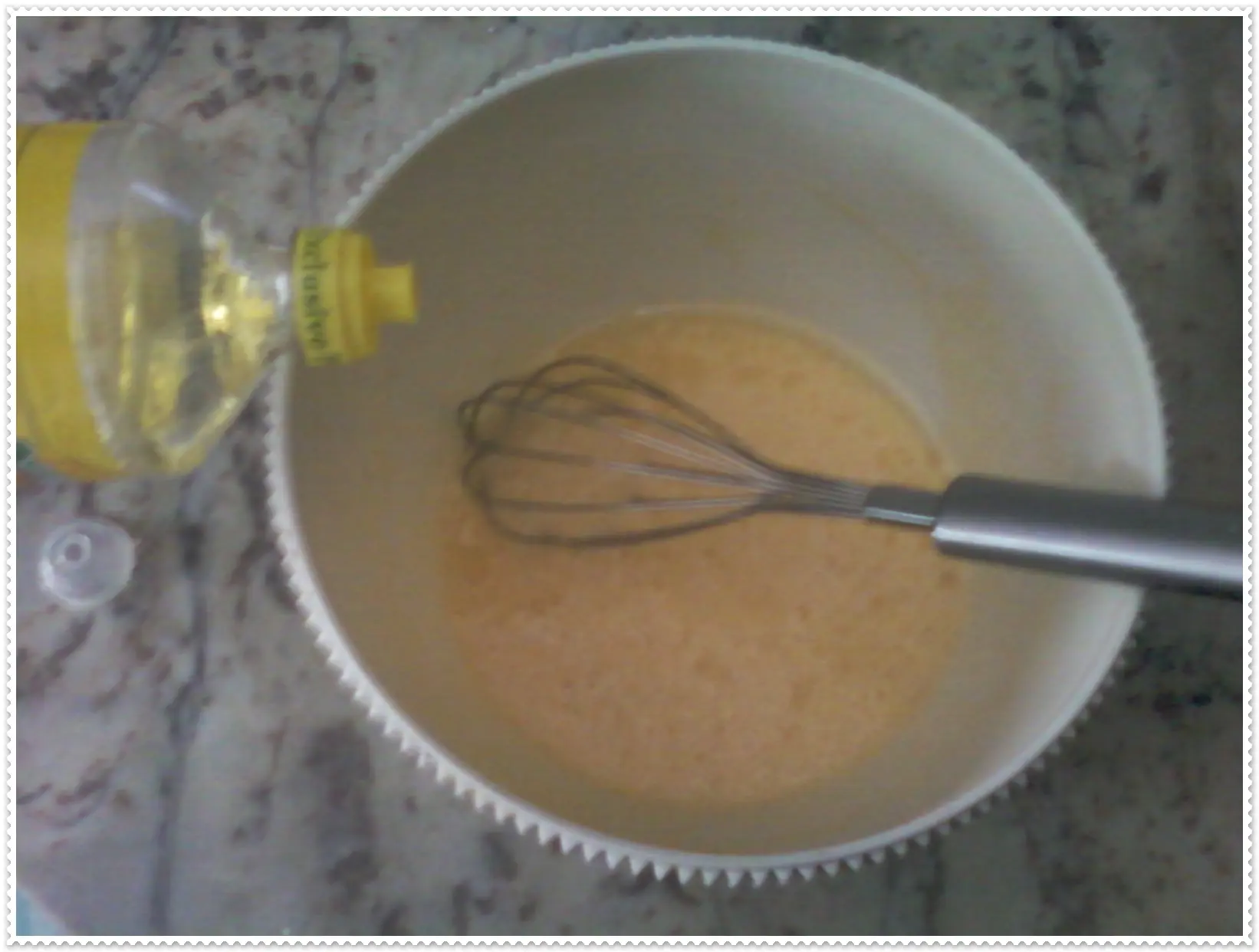 Mesclar los huevos con el azucar y batir un poco , perfumar con vainilla y/o ralladura de limón. De a poco ir agregando el aceite en forma de hilo y revolver suavemente. Incorporar la harina tamizada con el polvo de hornear y unir con la mano.