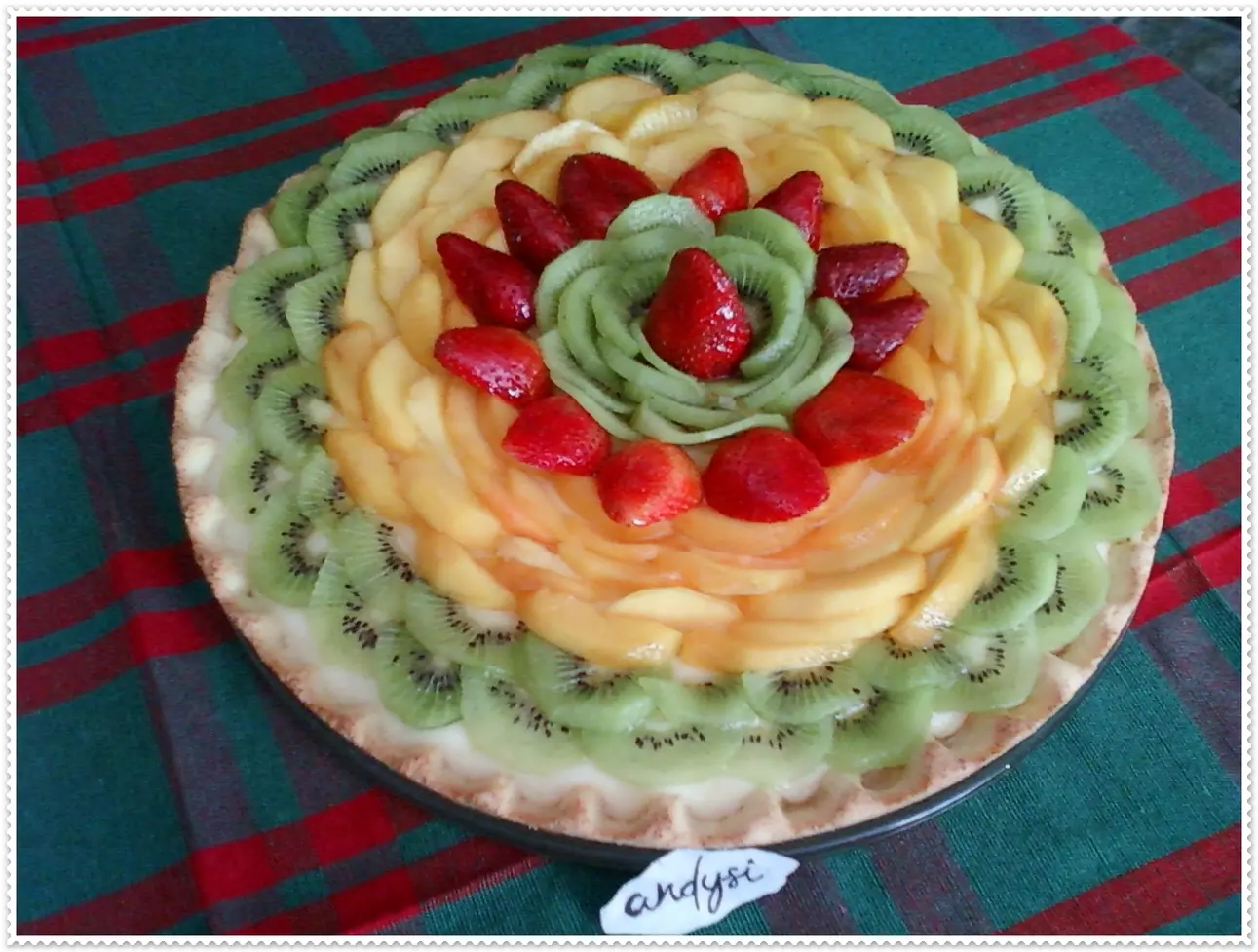 Buenas hoy les traigo una tarta de frutas , con una receta para la masa sin manteca . Esta masa la pueden usar para todo tipo de tartas dulces , como por ejemplo para hacer Pasta Frola.