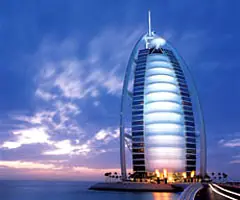 Construido a una altura de 321metros sobre el nivel del mar en una isla artificial y diseñado con la forma de una vela de dhow árabe, el Burj Al Arab hotel parece el barco más alto del mundo listo para zarpar. Es en realidad un hotel de 5 estrellas en las afueras de Dubai que ofrece el más refinado alojamiento y una impresionante decoración incluso en las secciones más modestas del edificio. Cada suite dúplex cuenta con ventanales completos que miran al Golfo de Arabia. Para las comidas, puedes escoger un menú contemporáneo europeo con una impresionante vista de 200 metros, o si tu habitación ya te ofrece suficiente vista, puedes optar por el restaurante submarino que ofrece comida de mar.