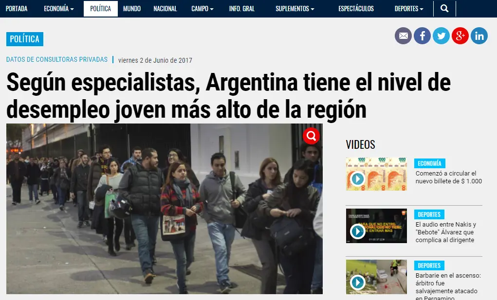 Como pudimos observar anteriormente, Argentina encabeza la lista de los paises con mas desempleo joven en la region