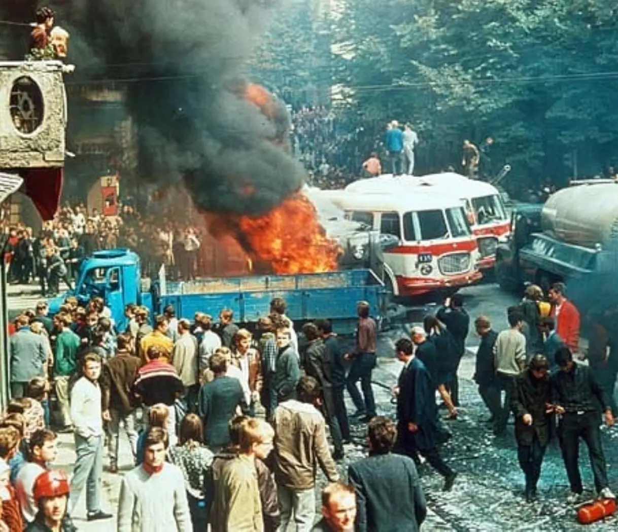 Barricadas en las calles de Praga en contra de la invasión.