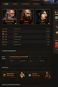 Una pestaña de “carrera” que mostrará a todos tus héroes, qué tanto has progresado en la campaña de Diablo III, la cantidad de enemigos que has derrotado, los nombres y tiempo de juego de tus héroes caídos en modalidad Extrema y más.