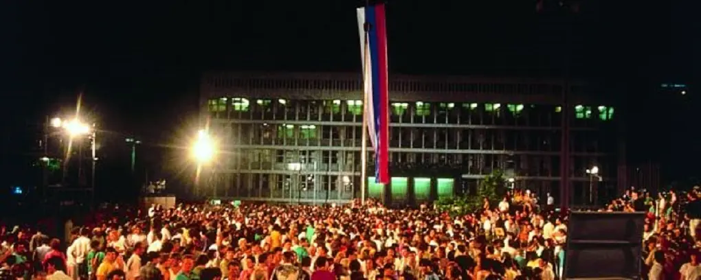 Manifestación popular de eslovenos en 1991