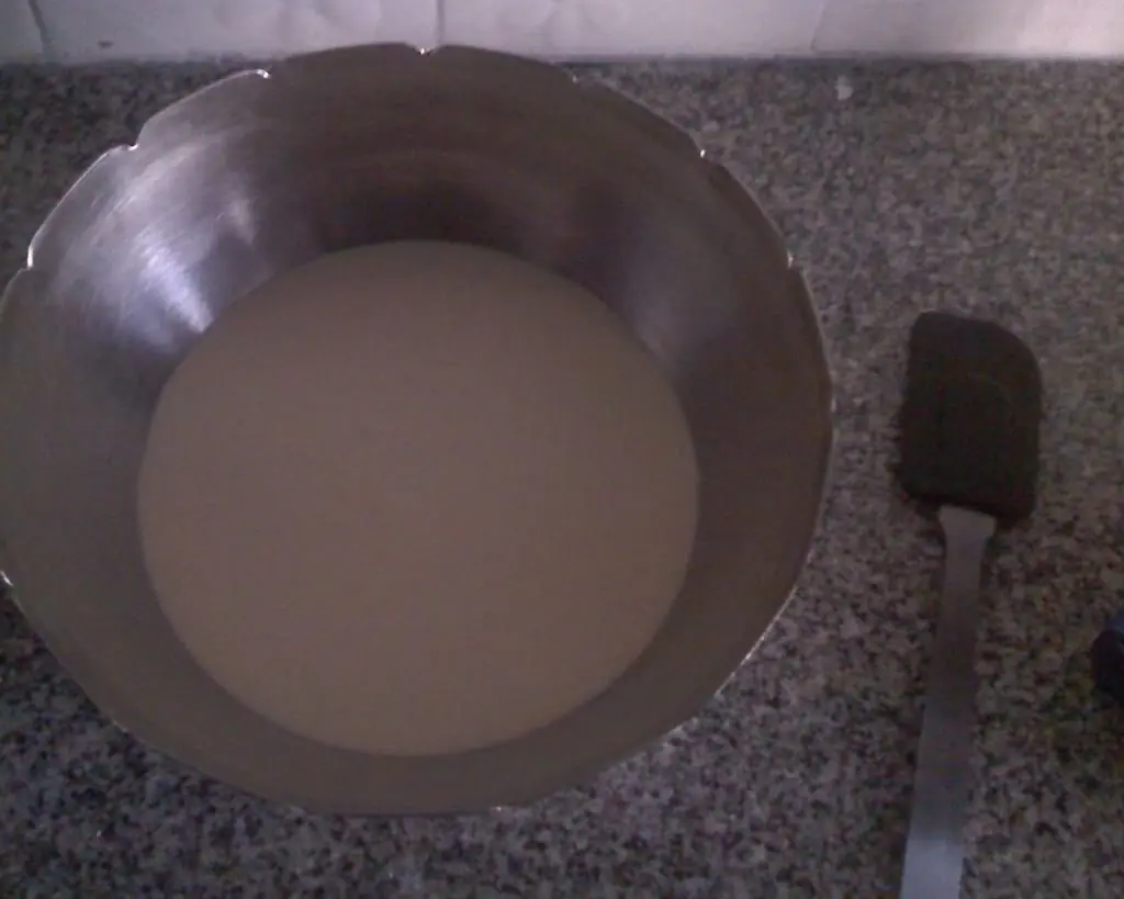 4. Mezclamos y luego volcamos el contenido sobre el molde.