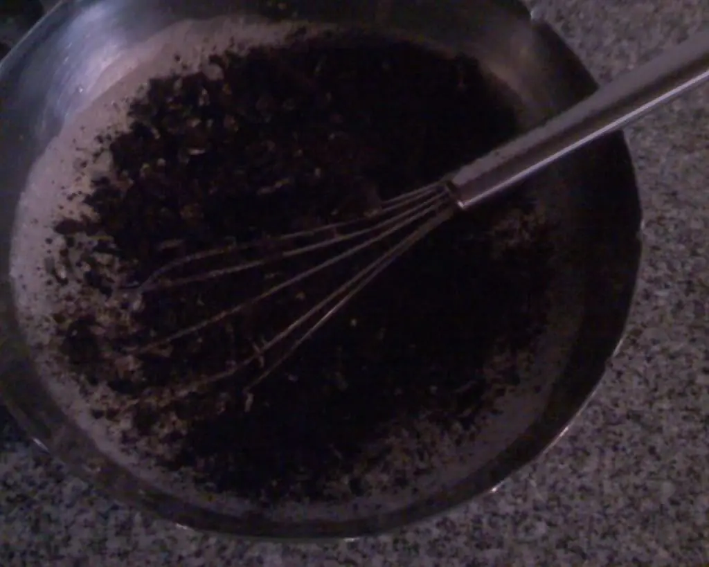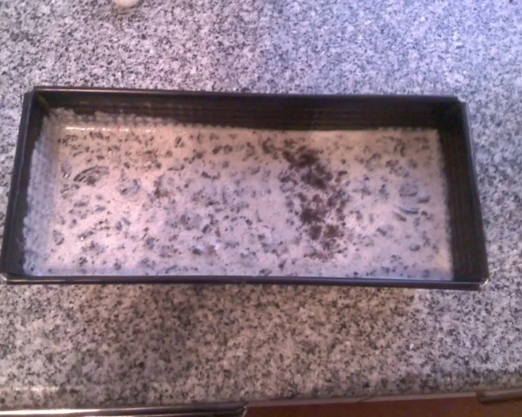 Así te queda despues de haber tirado la leche condensada y las oreos trituradas.