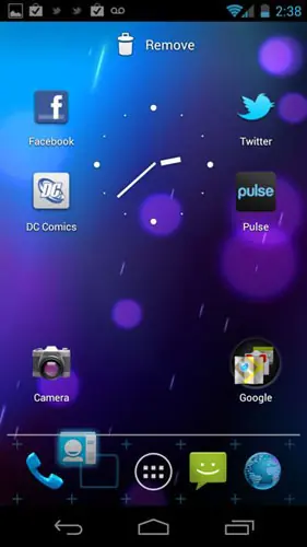 ICS cuenta con cinco pantallas de inicio de desplazamiento, pero poner las aplicaciones en la estancia inferior. Ahora, son adaptables así que usted puede escoger sus aplicaciones favoritas de cuatro a tener siempre disponible.