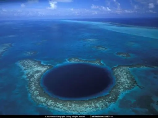 El Gran Agujero azul es un agujero submarino que se encuentra frente a la costa de Belice. El agujero es de 400 metros de ancho y 150 metros de profundidad.