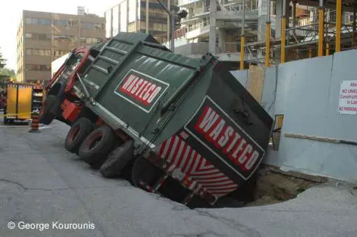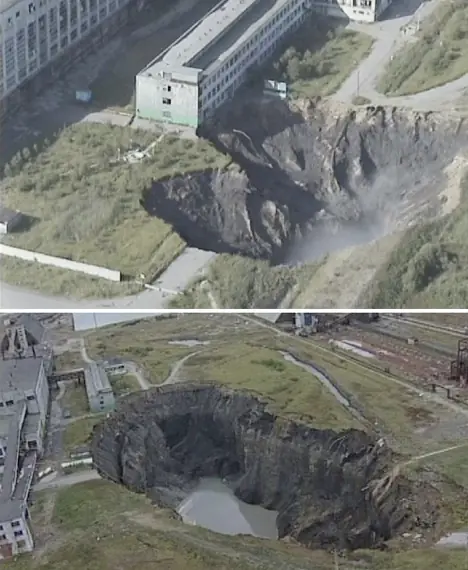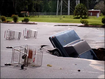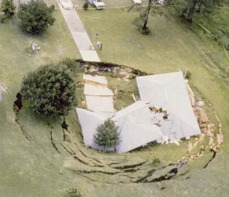Por otro lado, tambien están los conocidos como Sinkholes, que simplemente son agujeros o socavones producidos por el corrimientos de las capas interiores de la tierra. Mayoritariamente causados por el agua tras periodos de intensas lluvias. Estos agujeros son típicos de las ciudades, muchas veces por construir en lugares sin realizar las catas de terreno correspondientes y otras por el exceso de huecos creados para canalizacones de diversos tipos. En muchos casos, esos agujeros urbanos se tragan todo lo que pillan en su superfície, incluyendo casas, vehiculos y confiandos paseantes.
