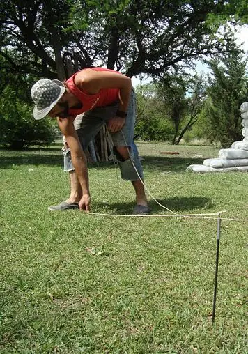 Con una estaca y una soguita de la medida del radio se marcan los circulos en el piso