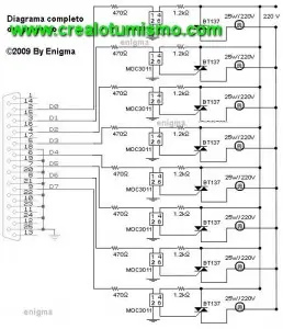 Cabe aclarar que debemos hacer 8 de estos circuitos para poder controlarlos con el programa que mas adelante les dejo.