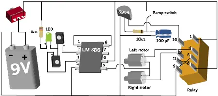 Ahora siguiendo el circuito eléctrico hacer las conexiones.