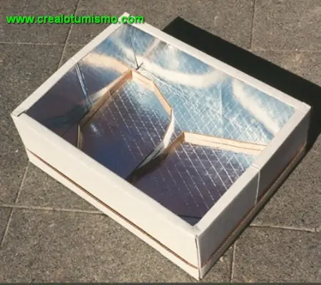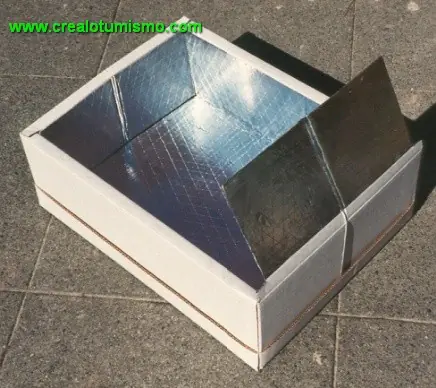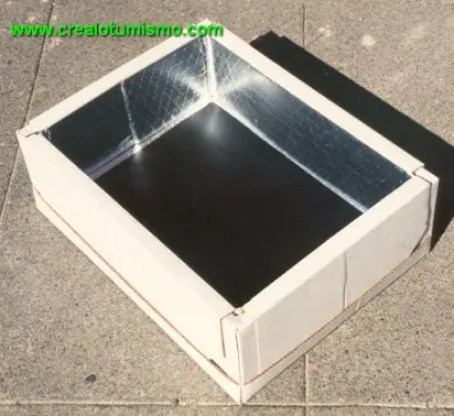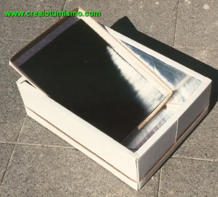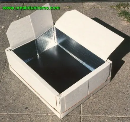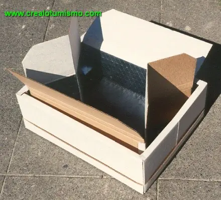 Corta el fondo de la caja más pequeña y ponla dentro de la otra caja (descansando sobre los topes). Coloca la bandeja negra metálica sobre este fondo.