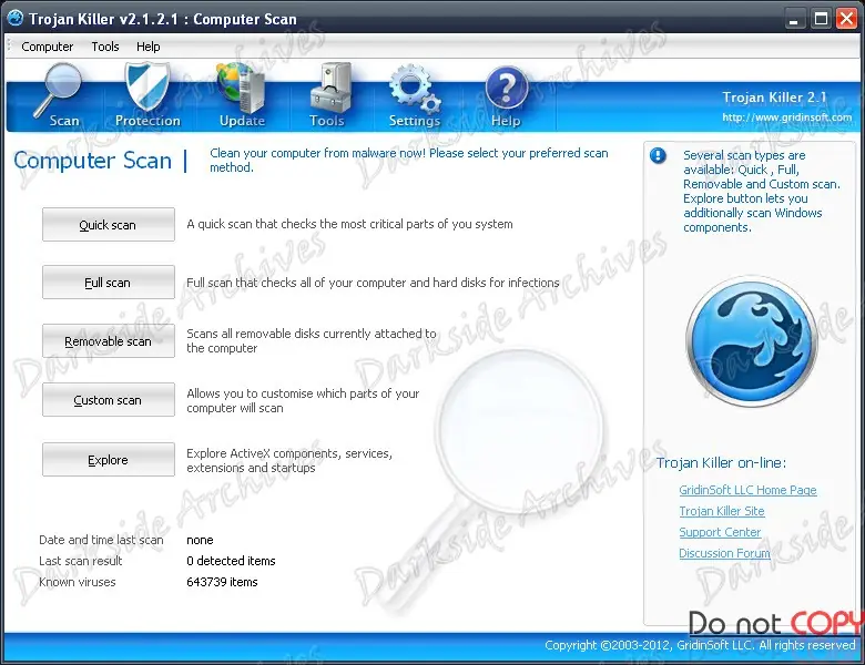Trojan Killer trabaja en el campo de la seguridad del sistema para garantizar la seguridad de los sistemas informáticos. Proponemos productos que le ayudarán a deshacerse de los molestos adware, herramientas ásperas malware y otras. Es muy importante restablecer el control de su equipo tan pronto como sea posible sin que nadie use sus datos.