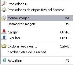 2. En la parte de abajo tenemos las unidades virtuales; en este caso 3. Por defecto solo se tiene una pero en las opciones del programa se puede aumentar. Donde indica en la captura le damos con el boton derecho sobre una unidad virtual y le damos a 'Montar imagen...'.