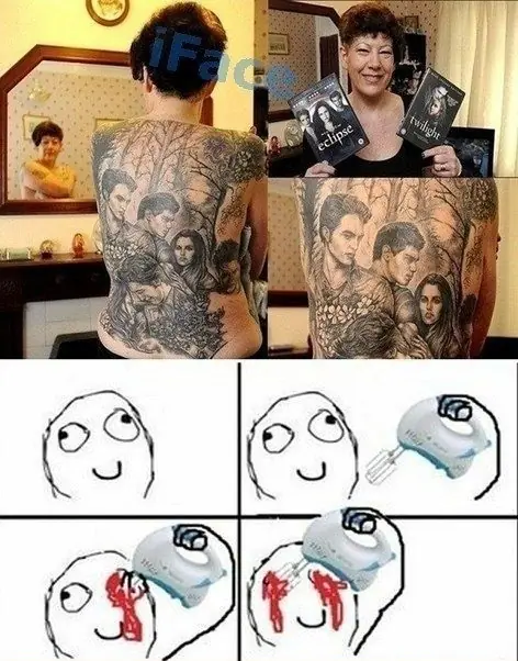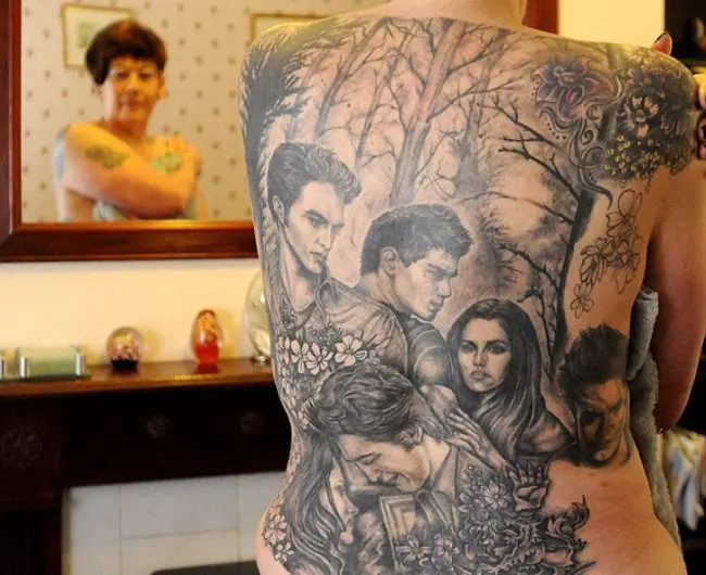 Una mujer de 49 años se tatúa toda la espalda con imágenes de Crepúsculo