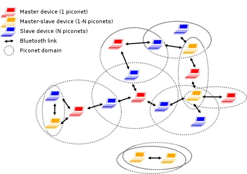 Cuando dos o mas dispositivos equipados con Bluetooth se encuentran dentro de su alcance, automáticamente establecen una red de área personal o “piconet” en la cual los dispositivos acuerdan si van a intercambiar archivos, voz, cualquier tipo de información, o bien si uno de ellos puede controlar al otro, también se sincronizan a modo de cambiar de frecuencias al unísono para permanecer en contacto entre ellos e ignorar señales emitidas de otros equipos que no pertenecen a la red y así evitar conflictos con otras piconets que puedan estar operando en el mismo lugar.