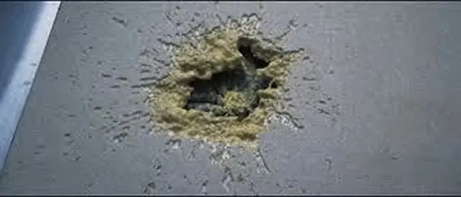 -El efecto de corrosión inmediata del piso de la enfermería (cuando estudiaban el parásito de Kane), fue hecho con una mezcla de cloroformo, acetona, ciclohexilamina y ácido acético que se derramaron sobre styrofoam.