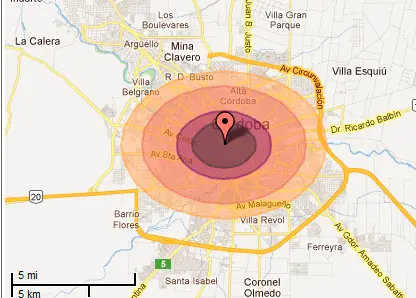 Esto significa que lanzado desde el medio del oceano, hubiera tardado algo mas de 20 minutos hasta llegar a la ciudad de Cordoba.