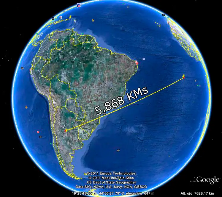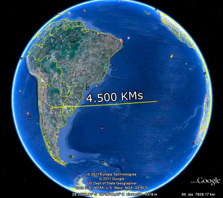Distancia desde la Isla Ascension hasta la ciudad de Cordoba.