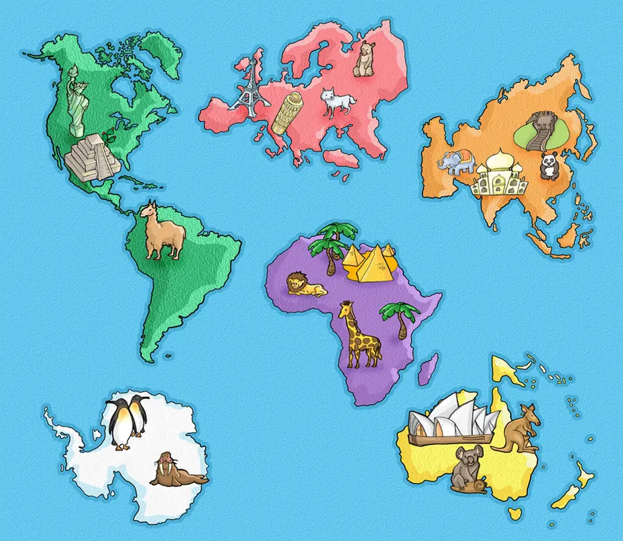 África, América, Asia, Antártida, Oceanía y Europa (y 4 de los 6 continentes comienzan con la misma letra). Incluso los antiguos continentes: Gondwana, Pangea, Lausaria… ¿Sólo una curiosidad del lenguaje?