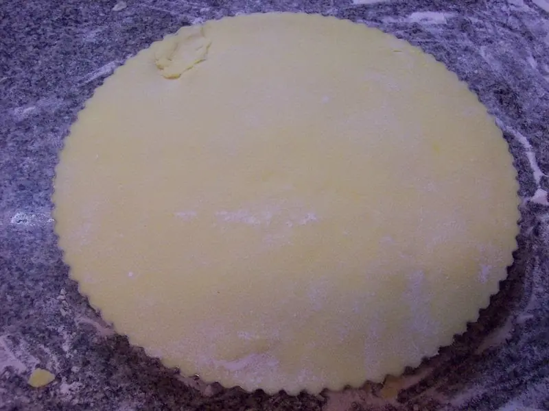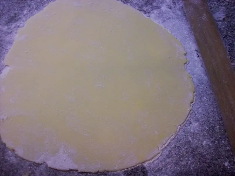 Estirar la masa lo más redonda posible de 1/2 cm (aprox) de espesor