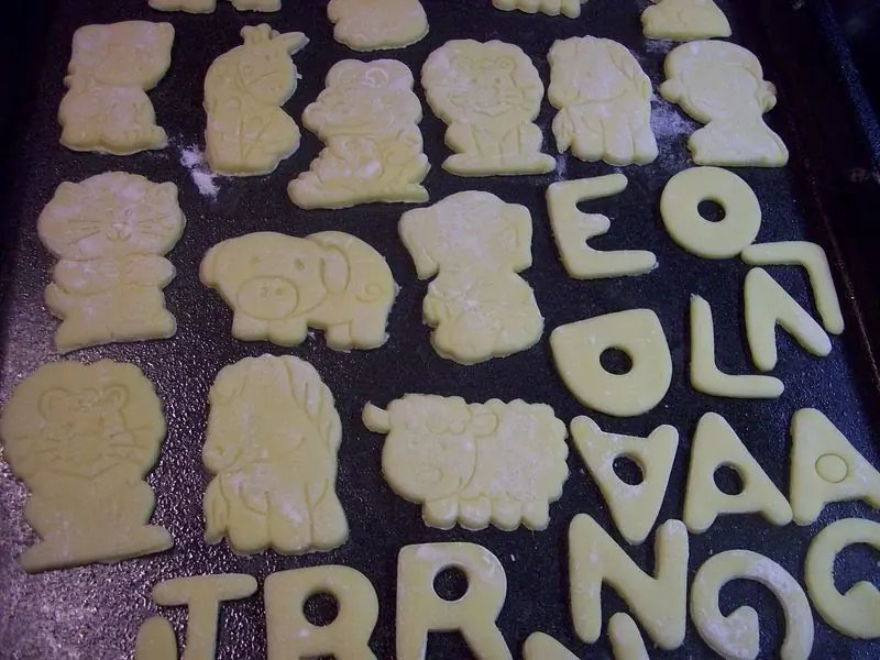 Con algún cortante o vasito o cuchillo cortar las galletitas. Yo tenía unos animalitos que la rompen, y letras.
