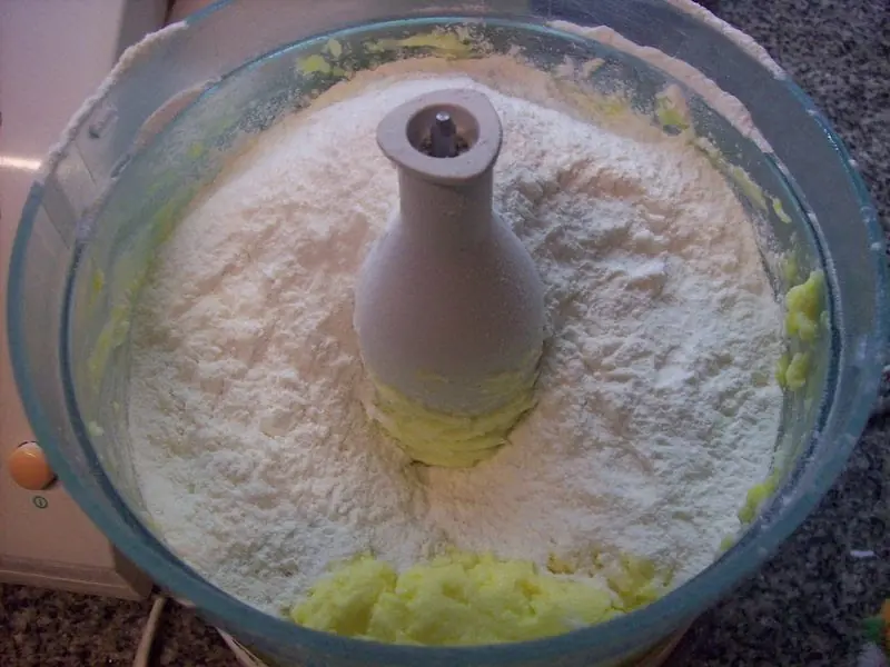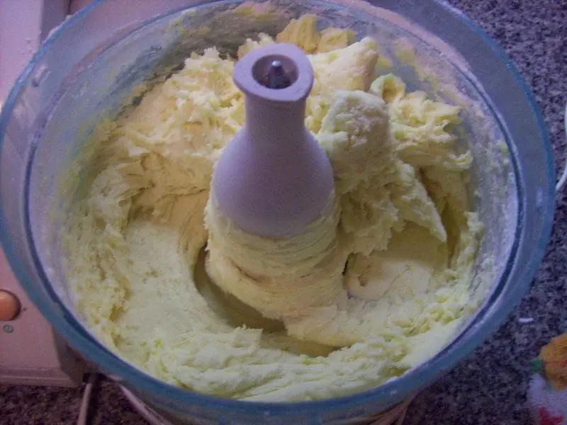 Yo la masa la hagon en procesadora porque obviamente es más fácil y rápido, pero pueden amasarla también (osea, no amasarla, porq lleva mucha manteca y hay que amasarla lo menos posible)