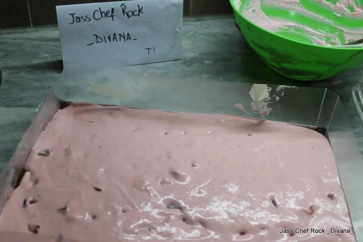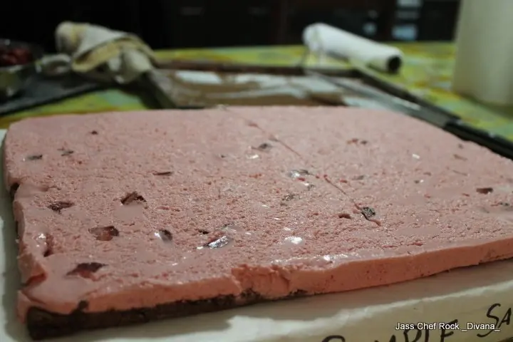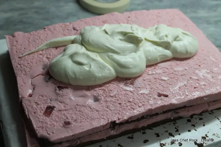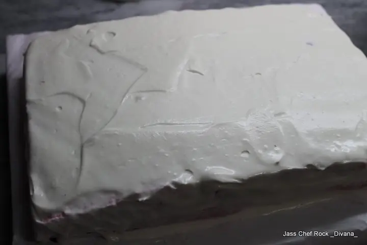 Una vez que ya lo tengás por encima del brownie, vas a llevarlo a la heladera por media hora o más, es importante dejar que la crema gelidifique porque sino, cuando saqués el papel acetato se te va a escapar todo.