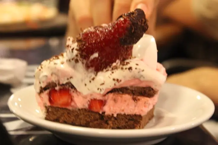 Torta de brownies con cheesecake de frutillas