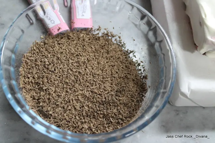 Vamos a rallar 3 barritas de chocolate y vamos a llevar a microondas por 30 segundos, vamos a mezclar, otros 30 segundos, volvemos a mezclar y así (esto es para que el chocolate no se les queme ni les quede algo diferente a un baño)