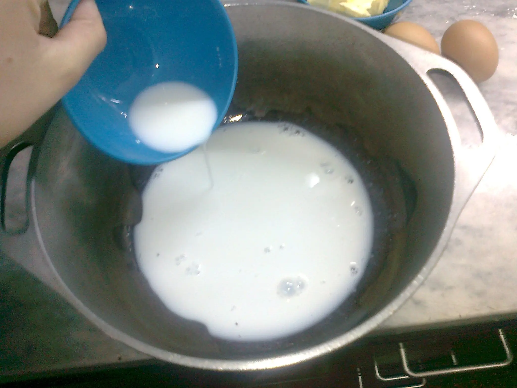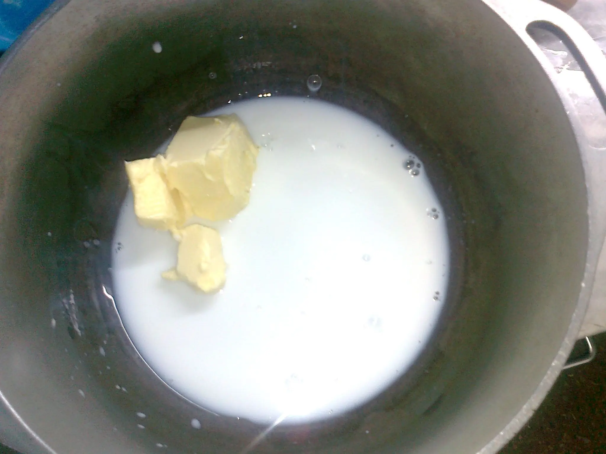 En una cacerola agregar la leche y le agua