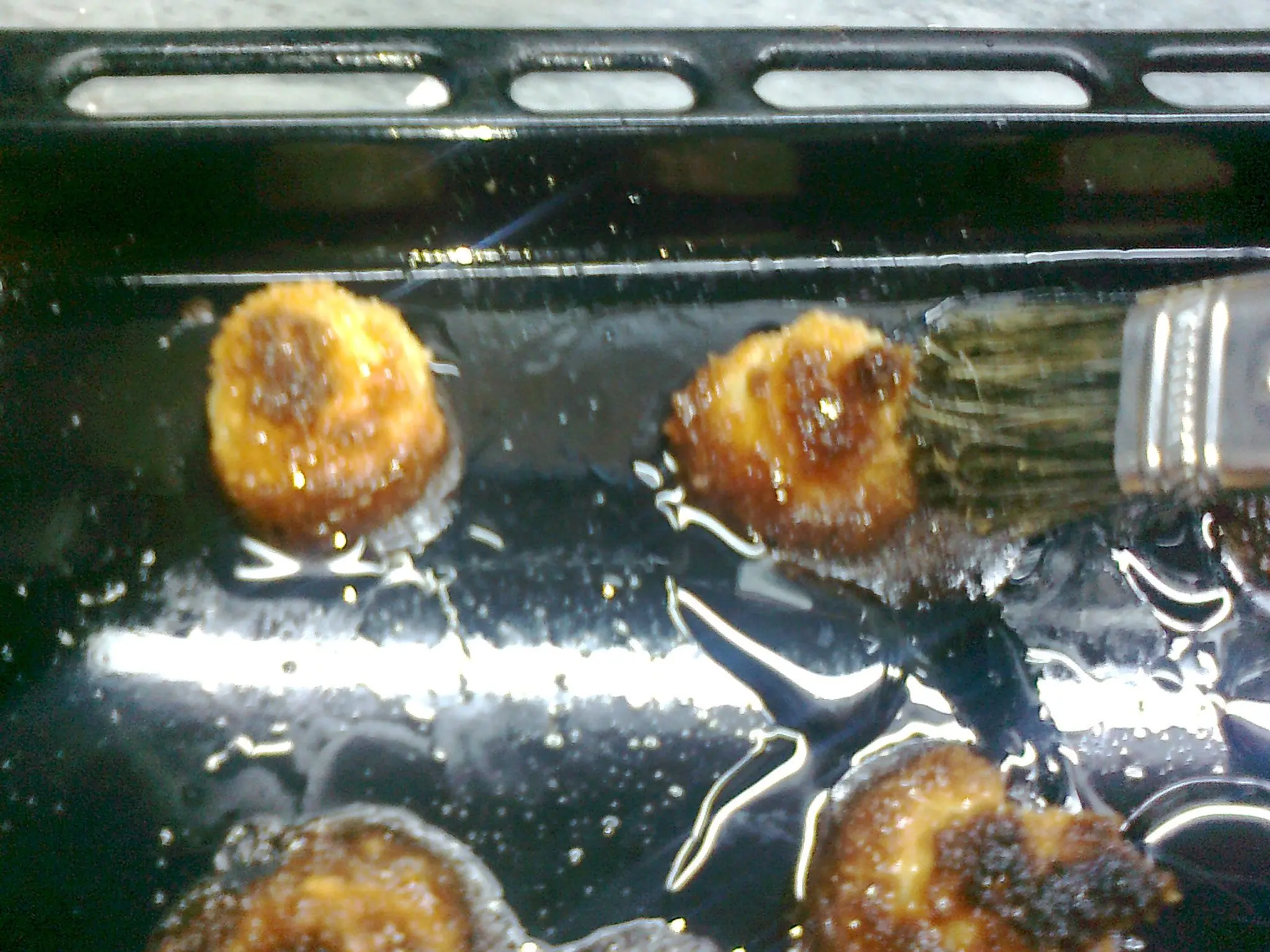 NOTA: les puede pasar que pasado los 20 min los coquitos esten cocinados en la base, pero en el cuerpo les falta color (eso depende mucho del horno que usemos) pero a no exasperarse! podemos usar ese cajoncito donde está el quemador del horno, si.. ese donde tu mamá hace las pizzas. Bueno, mi horno no lo tiene xD (cada vez más tecnología, pero no tengo cajoncito ¬¬) bueno, tengo un horno pizzero y lo mande a la parte donde están los quemadores, como te muestro en la foto hasta que me gustó el color que tomaron