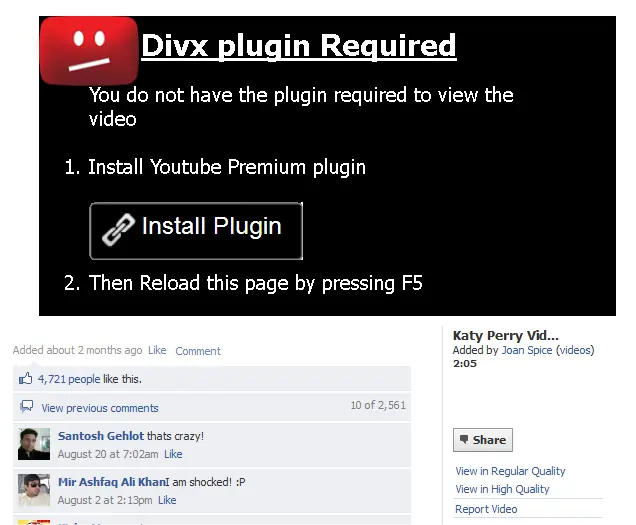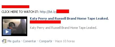 A pesar de la cantidad de engaños que se expanden como la pólvora en Facebook, la curiosidad de los usuarios parece que hace que no aprendamos de nuestros errores. En los últimos días hemos visto como un supuesto video casero de Katy Perry y Russell Brand no para de aparecer en los muros de cientos de usuarios. Lo que vemos si uno de nuestros amigos ha caído en la trampa es lo siguiente: