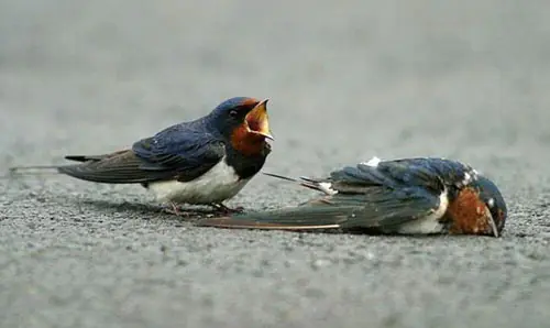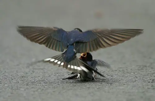 en un punto se sorprendió de ver a su pareja muerta y trato de moverlo para ver si reaccionaba,este acto no es muy común en las golondrinas.