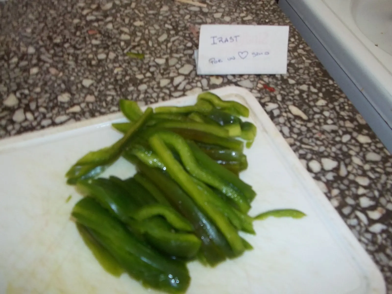 Cortamos el pimiento verde en juliana.