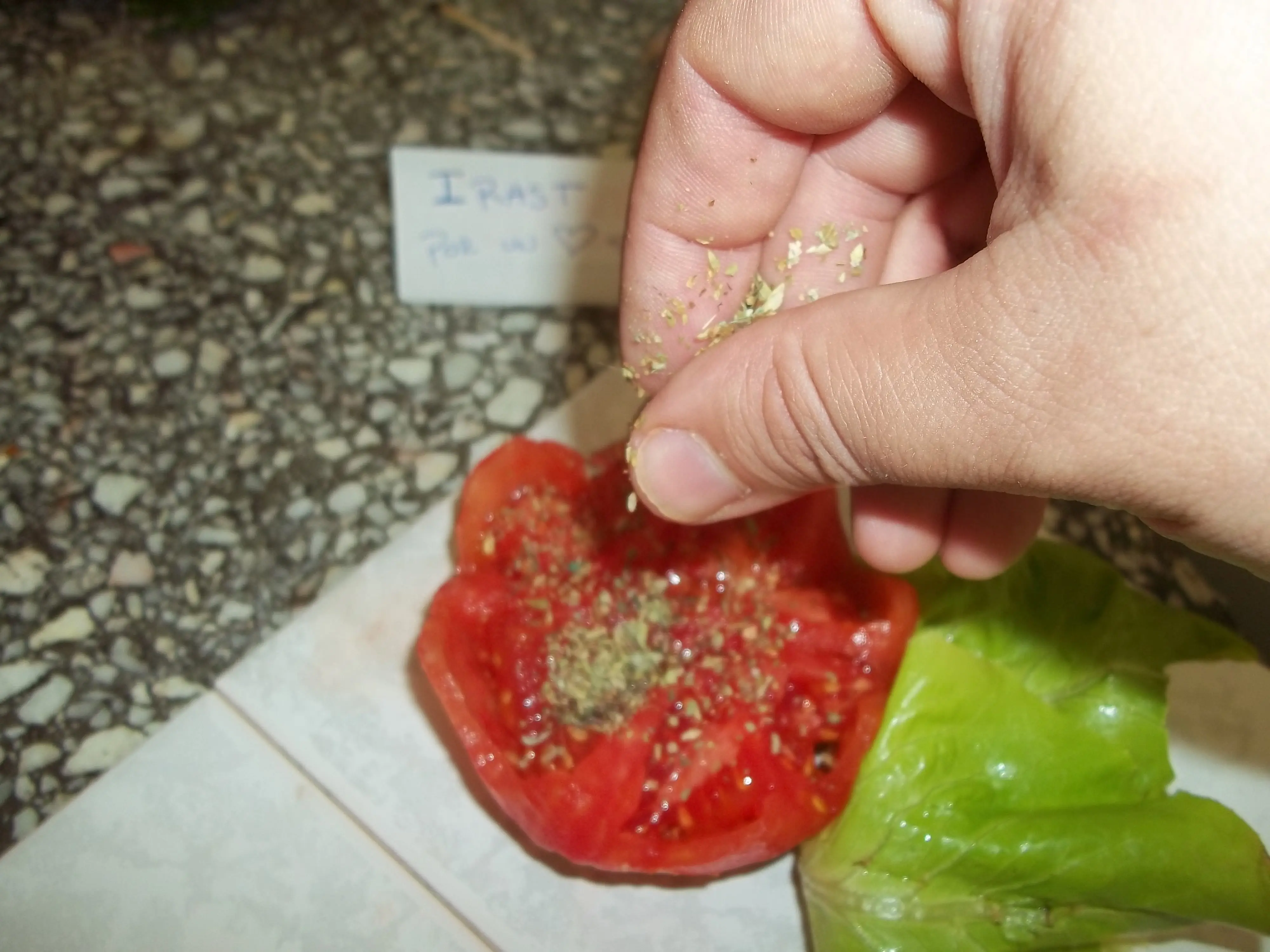 Colocamos un hilito de aceite de oliva y condimentamos con orégano, así le damos mas sabor sin agregar sal extra.